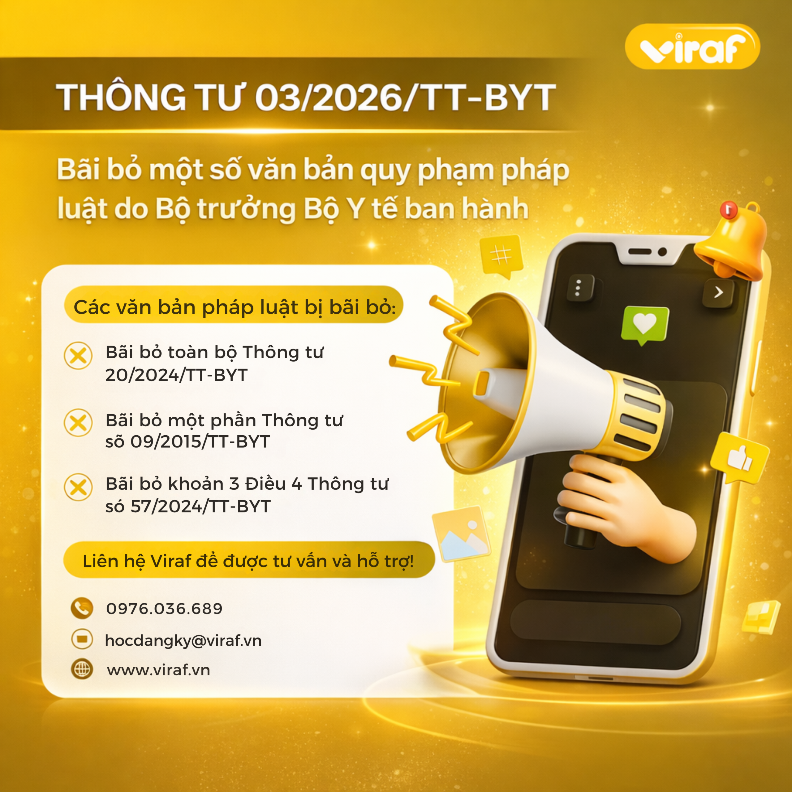 Ngày 12/02/2026, Bộ Y tế ban hành Thông tư 03/2026/TT-BYT, có hiệu lực từ ngày 15/02/2026, quy định việc bãi bỏ một số văn bản liên quan đến xác nhận nội dung quảng cáo sản phẩm, hàng hóa, dịch vụ đặc biệt trong lĩnh vực y tế. Đây là thay đổi quan trọng, ảnh hưởng […]